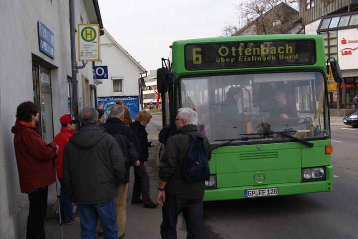 An der Bushaltestelle in Eislingen in der Salacher Straße gegenüber der Kaufstätte versammelten sich 14 Wanderwillige.