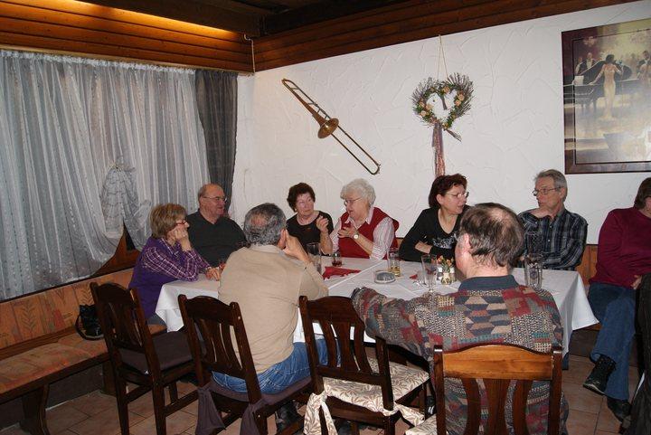 Danach ging es in westlicher Richtung weiter bis zum asphaltierten Weg vom Täleshof kommend. Auf diesem Weg ging es jetzt weiter in südlicher Richtung bis wir nach Eislingen kamen, wo wir im 'Musikantenstadel' gegen 16.30 Uhr eintrafen und unseren Tagesabschluß machten. Hier waren nun 23 Personen anwesend. Alle genossen das gute Essen.