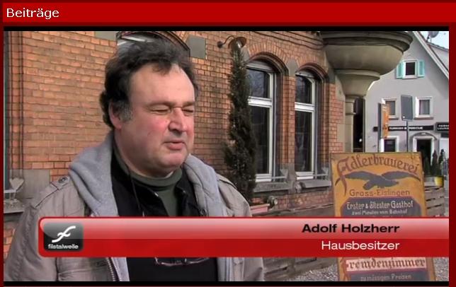 Die Filstalwelle hat die von eislingen-online am Samstag veröffentlichte Aktion des Besitzers des Adlers, Adolf Holzherr, aufgegriffen und heute einen Bericht über den Balkon, den Zaun und den Leserbrief im Fernsehen veröffentlicht. |