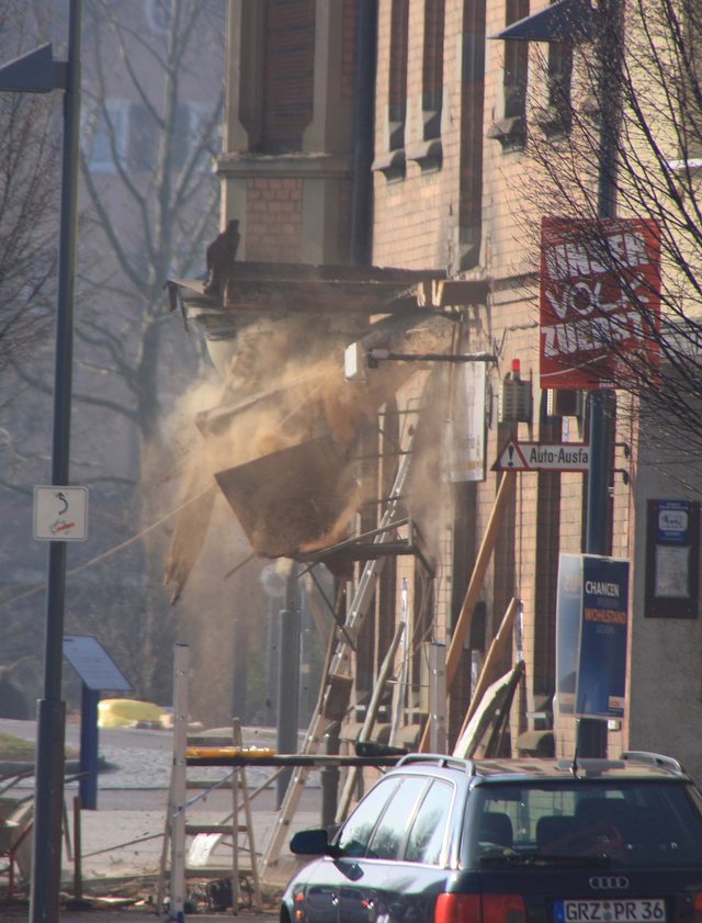 Der Adler hat einen Teil seines Gesichts verloren Bilderserie vom Balkonabriss . dokumentiert von Axel Raisch 06.3.2011 - Hans-Ulrich Weidmann