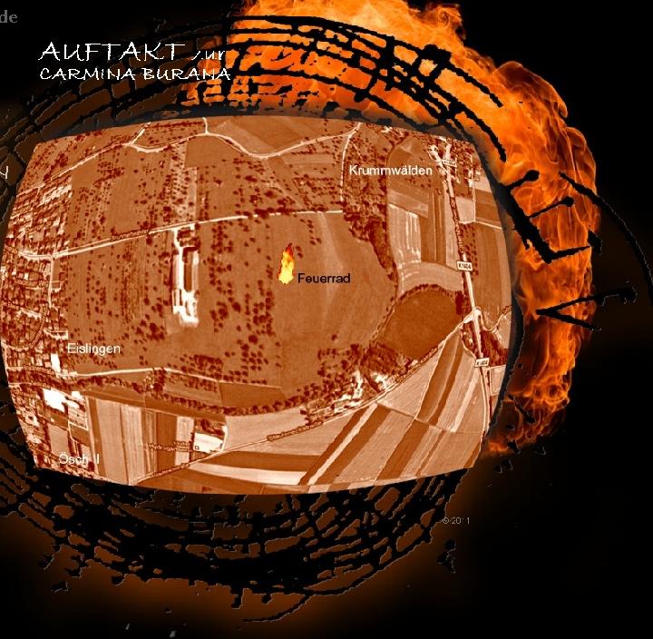 Zur Einstimmung wird am kommenden Samstag, den 19.März 2011 um 19:00 Uhr ein Feuerrad sich funkensprühend ins Krummtal wälzen. In Zusammenarbeit mit dem OGV Krummwälden entstand dieses Ereignis als Frühlingsankündigung und Hinweis auf die Aufführung des Chorwerks. Karl Orff hat in seinem Werk mittelalterliche Texte vertont, die den zyklischen Ablauf der Natur und des Lebens nachspüren, wie auf der Homepage von thomasfaupel.online.de zu lesen ist.