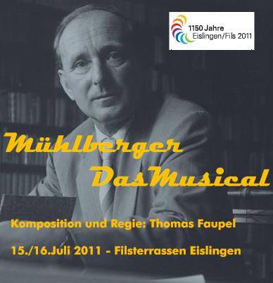 Josef Mühlberger ist zwar kein gebürtiger Sohn der Stadt Eislingen, aber er hat unsere Gemeinde zu seiner Wahlheimat nach dem Krieg gemacht und blieb Eislingen bis zu seinem Tod treu. Damit liegt es auf der Hand, diesem großen Poeten zum Stadtjubiläum ein eigenes Musical zu widmen. Wir können gespannt sein, wie der Salacher Theaterpädagoge Thomas Faupel zusammen mit regionalen Kunstschaffenden Mühlbergers Leben und Wirken in Württemberg umsetzt. |