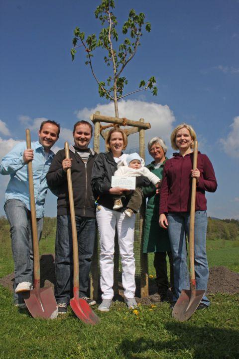 Die Eltern und Taufpaten des kleinen Jonas haben zusammen mit Martina Ruckwied von der Stadtgärtnerei am Spielplatz Krummwälden eine Kastanie gepflanzt für die sie die Patenschaft übernommen haben. Das bedeutet, dass die Kosten für den Baum von den Stiftern übernommen wurden, die Pflege jedoch von der Stadtgärtnerei gewährleistet wird.