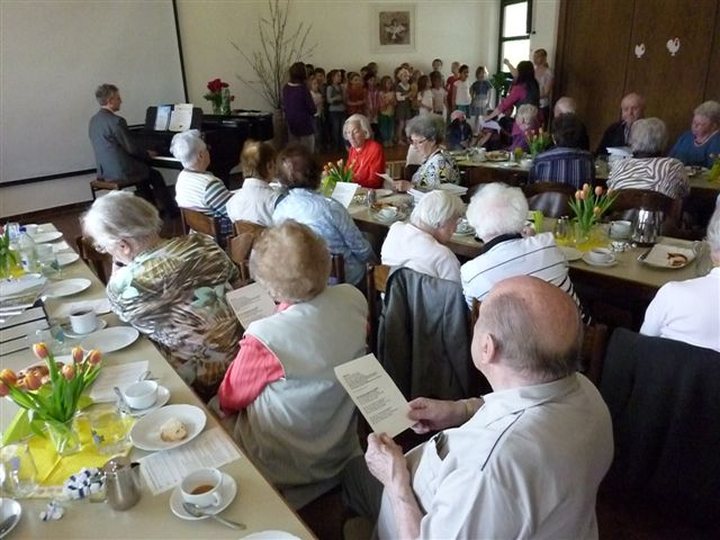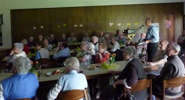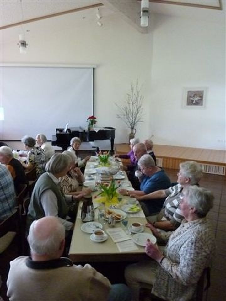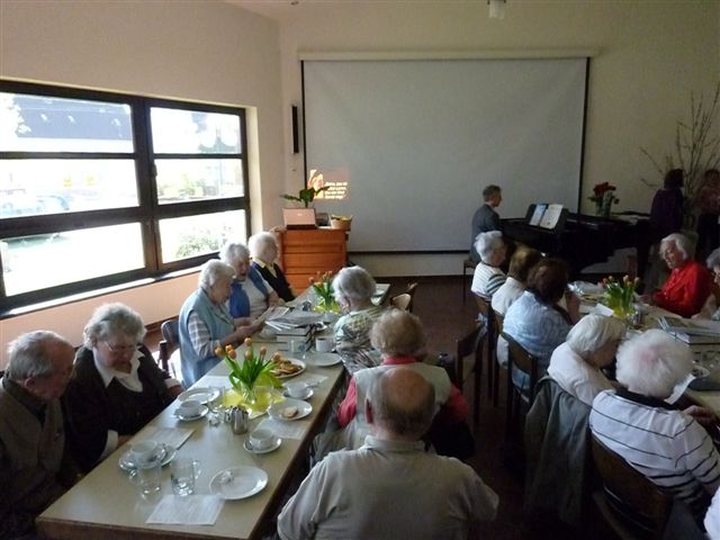 Es war ein sehr abwechslungsreicher und lebendiger Seniorennachmittag, zu dem die SeniorenInnen am 7. April ins Gemeindehaus der Christuskirche kamen. Die einladenden Tischreihen waren mit freundlichen Tulpensträußen dekoriert und die Raumdekoration gab schon einen Eindruck des nahenden Osterfestes.