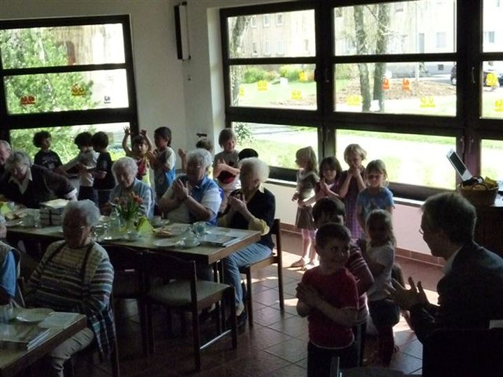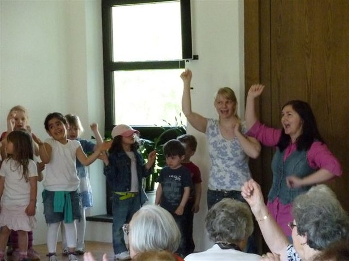 Natürlich gab es für die Kinder und Erzieherinnen zum Abschluss einen Riesenapplaus und als Belohnung für das fleißige Vorbereiten und Üben noch etwas Süßes. Fröhlich und quirrlig verließen die Kinder das Gemeindehaus und unsere SeniorInnen freuen sich jetzt schon auf den nächsten Kindergartenbesuch.