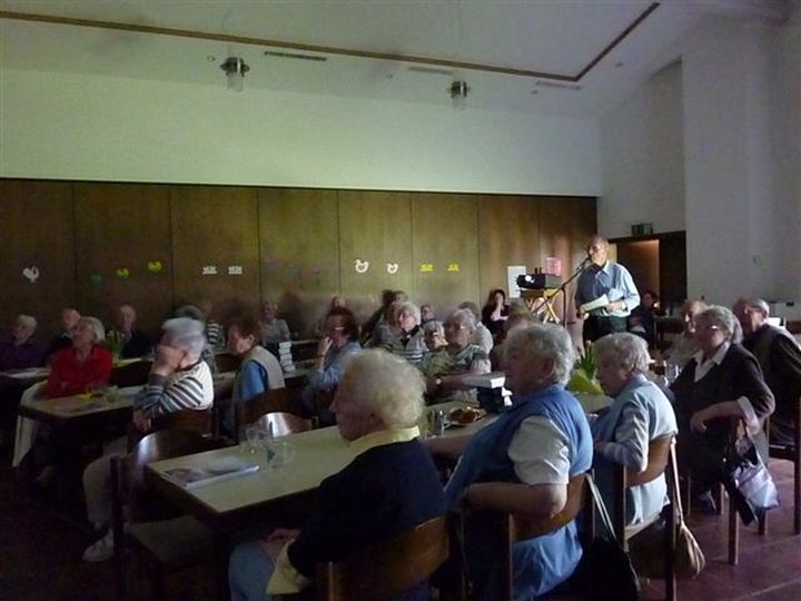 Es sind noch weitere, abwechslungsreiche Bilder aus Eislingen und Umgebung, die nun Walter Kärcher vom Albverein den Anwesenden zeigt. Dabei nimmt er die SeniorInnen mit auf eine Reise durch Zeit und Raum: Eislingen einst und heute, und schließlich hinaus in die Natur der näheren Umgebung, vorbei an Bachläufen, hinauf auf Bergeshöhen. Faszinierend ist es mitzuerleben, wie sich das Gesicht Eislingens durch die Jahrzehnte verändert hat. Beeindruckend, wie farben- und formenreich Gottes Schöpfung ist.