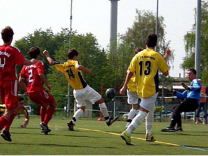 Aus Eislinger Sicht hatten Jasmir Julevic mit einem Freistoss aus 30m Torentfernung gegen den Pfosten und Tobias Kienle mit einem Hammer aus 25m, knapp über die Latte, die besten Chancen in der ersten Spielhälfte.