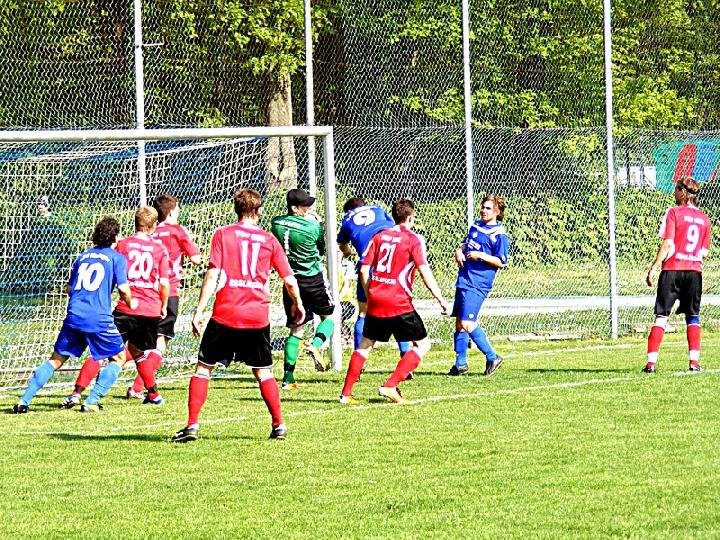 (tr) Eine zu hoch ausgefallene 1:5 Niederlage kassierte der FC Eislingen im Landesligaspiel beim TSV RSK Esslingen. Dabei profitierten die Gastgeber von hanebüchenen Aussetzern in Eislingens Hintermannschaft. Eislingens Defensivverhalten der gesamten Mannschaft ließ auf dem Rasenplatz im beschaulichen Esslinger Stadtteil Sulzgries Landesligaformat vermissen. Erste Akzente setzte jedoch der FC. Yasin Ceküc, bis zu seinem verletzungsbedingten Ausscheiden bester Eislinger Akteur, setzte sich auf dem Flügel energisch durch und seine Hereingabe verwertete Sven Gulin (10.) zur vermeintlichen Führung für die Blau-Weißen. Die Fahne des Linienrichters zeigte nach ober, der Treffer wurde wegen Abseitsstellung des Schützen nicht gegeben. Nach 18 Minuten musste Esslingens Demir Muric nach einem Zusammenprall mit Eislingens Peter Rupp mit einer blutenden Kopfverletzung das Spielfeld verlassen. Vier Minuten später gingen die Hausherren in Führung. Einen lang gezogenen Freistoß köpfte Kevin Börngen völlig freistehend ins Eislinger Tor. Eislingens Hintermannschaft, in der Hinrunde Garant für einige Punkte, wirkte wie zuletzt sehr anfällig. Esslingens Torhüter Bastian Krenz musste kurz vor dem Seitenwechsel bei einem Schuss von Eislingens Fabian Landsinger klären. Nach Wiederbeginn bestimmten die Eislinger das Geschehen und erarbeiteten sich auch Torgelegenheiten. Nach einer Flanke von David Hilger nahm Fabian Landsinger erneut Maß verfehlte jedoch das Tor der Einheimischen nur knapp (46.). Eine Minute später zog nach Zuspiel des eingewechselten Robert Wais, Srdjan Mojasevic nur knapp über das Esslinger Tor. Es war die beste Phase der Eislinger und mitten in die Drangperiode platzte das 2:0 für Esslingen. Tobias Gauss traf mit einem strammen Schuss aus über 20 Metern genau in den Winkel des Eislinger Tores. Der Torjubel war noch nicht verhallt da brachte Sven Gulin nachdem Nico Bilitsch energisch nachgesetzt hatte den FC wieder auf 1:2 Tore heran. In der 69. Spielminute machten die Hausherren erneut nach kapitalen Stellungsfehlern in Eislingens Hintermannschaft das 3:1. Heiko Reutter war nach einem langgezogenen Freistoß per Kopfball erfolgreich. Erneut war das Eislinger Abwehrverhalten Alibi, mehr auch nicht denn außer dem Torschützen standen noch zwei Esslinger Spieler sträflich ungedeckt frei. Das 4:1 durch Andreas Wittich per Nachschuss in der 82. Spielminuten und das 5:1 per an den Haaren herbeigezogenem Foulelfmeter erneut durch Kapitän Tobias Gauss machten die hohe Eislinger Niederlage perfekt. Individuelle Aussetzer in der Defensive müssen vor dem Montag Nachholspiel gegen Essingen (Anspiel 15 Uhr) dringend abgestellt werden sonst finden sich die Eislinger ganz schnell in der Abstiegszone wieder. |