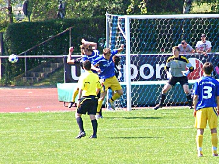 Die Eislinger Defensive war im Eichenbachstadion weitgehend Herr der Lage, nur ganz selten kamen die Gäste in wirklich gute Schussposition. Was dennoch aufs Tor kam, war sichere Beute von Keeper Michael Bantle. Zwar zeigte der Tabellenzweite von der Ostalb erwartungsgemäß die reifere Spielanlage, doch dies kompensierte der FC Eislingen mit viel Einsatzbereitschaft. „Hut ab vor beiden Mannschaften für das hohe Tempo bei diesen Temperaturen, und das mit nur einem Tag Pause', lobte Schneller. Der Trainer hatte seine Mannschaft gegenüber der Klatsche von Esslingen auf drei Positionen verändert. Robert Wais und Patrick Haug rückten ebenso ins Team wie Steifen Dangelmayer, der im linken Mittelfeld ein gelungenes Comeback in der Startelf nach mehrmonatiger Verletzungspause feierte. Stürmer Patrick Haug musste allerdings in der 43. Minute mit Oberschenkelproblemen wieder vom Platz, für ihn kam A-Junior Maximilian Ziesche zu seinem Debüt in der Landesliga. Dieses war nach kaum mehr als einer halben Stunde schon wieder beendet, denn in der 74. Minute musste Ziesche wegen Ballwegschlagens mit Gelb-Rot vom Platz. Zwei Minuten später rettete Bantle mit starkem Reflex gegen Jochen Tenz. Näher kam der TSV Essingen aber nicht mehr an einen Torerfolg. Der FC Eislingen überstand auch in Unterzahl die Schlussphase unbeschadet und freute sich über einen Punktgewinn, dessen Bedeutung Schneller weniger für die Tabelle einordnete: „Das war heute vor allem wichtig für die Moral.'