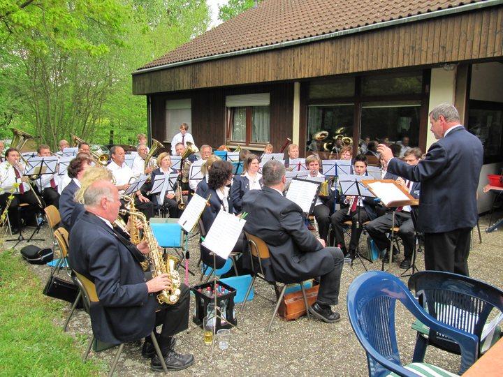 Leider sorgte gegen 12.30 Uhr ein Regenguss für ein abruptes Ende des musikalischen Frühschoppens. Die Stadtkapelle bedankte sich hiermit bei der Familie Indic, die seit 1. Mai 2010 die Leitung der Vereinsgaststätte Musikantenstadl innehat, für ihr Engagement.