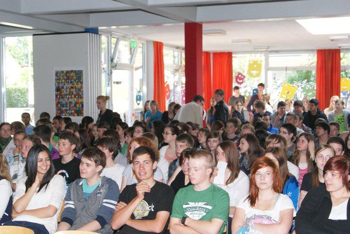 'Fur mich ist es egal welche Religion, welche Hautfarbe die Menschen haben.' Da steht nun Rachel Dror, Jahrgang 1921, vor zweihundert Schülerinnen und Schülern in der Aula der Dr.-Engel-Realschule und beginnt mit fester Stimme ihren Vortrag über ihr eigenes Leben. Wobei Vortrag sicher das falsche Wort ist. Sie schildert spannend und kurzweilig die Geschichte des dritten Reiches aus der Sicht einer damals heranwachsenden Jugendlichen mit jüdischen Glauben.
