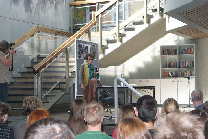 Ingrid Held, die Frau Dror als fesselnde Erzählerin bereits bei einem Besuch einer Schulklasse in der Stuttgarter Synagoge kennengelernt hatte, organisierte diesen Besuch in Eislingen. Und sie hatte sich in ihrer Einschätzung nicht getäuscht. Die zierliche neunzigjährige Frau, im kleinen Kreis ruhig und zurückhaltend, schaffte es problemlos, auf dem Podium zweihundert junge Menschen zu faszinieren und zum Nachdenken anzuregen.
