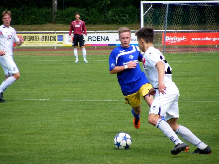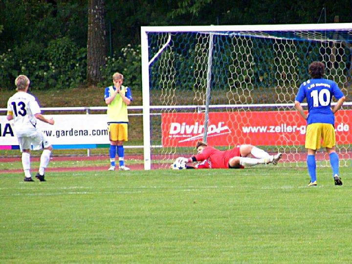 (tr) Das war nichts für schwache Nerven was sich gestern im Eislinger Eichenbachstadion abspielte. Doch die wichtigste Botschaft nach den nervenaufreibenden neunzig Minuten im Eichenbachstadion, der Traditionsverein FC Eislingen lebt und fuhr einen wichtigen 6:2 Heimsieg ein. Dabei schien alles gegen den FC zu laufen. Die Elf von Trainer Andreas Schneller zeigte sich besonders in der Hintermannschaft verunsichert und lag nach 16 Minuten mit 0:2 Toren im Rückstand. Die Eislinger griffen dieses Mal verstärkt auf die eigenen A-Junioren zurück und der FC kämpfte sich dann auch zurück ins Spiel. Ein Knackpunkt war hierbei sicherlich die 20. Spielminute als sich Ulms Torschütze zum 1:0, Ilir Tupela, gegen Eislingens Srdjan Mojasevic zu einer Tätlichkeit hinreißen ließ und vom umsichtigen Schiedsrichter Stefan Jenniger des Feldes verwiesen wurde. In Überzahl fand der FC dann vollends ins Spiel zurück. Marco Frank gelang in der spannenden, abwechslungsreichen Partie in der 37. Spielminute der 1:2 Anschlusstreffer. Zu einem psychologisch wichtigen Zeitpunkt, praktisch mit dem Halbzeitpfiff, glich der FC durch den ganz stark spielenden Pascal Volk aus. Volk überwand Ulms Torhüter Thomas Bromma mit einem gefühlvollen Schlenzer in den Winkel zum umjubelten Ausgleich. „Der war so kurz vor der Halbzeit wichtig für uns und hauchte uns wieder Leben ein.“, so FC-Trainer Andreas Schneller dem die neunzig Minuten ebenfalls sehr zusetzten. Denn überm Berg war seine Elf damit noch lange nicht. Vielmehr musste der dieses Mal erstaunlich lautstarke Eislinger Anhang nochmals die Luft anhalten. Wieder schlichen sich Fehler und schlechtes Zweikampfverhalten in Eislingens Defensive ein. Lukas Fetzer brachte seinen Gegenspieler im Strafraum zu Fall. Den fälligen Strafstoss, von Ulms Kapitän Markus Großhans getreten, konnte FC-Torhüter Michael Bantle, der zuvor den 0:1 Rückstand verschuldete, sicher festhalten. Wie eine Erlösung für die junge Eislinger Mannschaft wirkte das 3:2 durch Umut Sat nach herrlicher Vorarbeit von Youngster Max Ziesche in der 74. Spielminute. Eislingens Mannschaft zeigte nun herzerfrischenden Kombinationsfussball gegen eine nachlassende Ulmer Mannschaft. In der 81. Spielminute setzte Fabian Landsinger energisch nach und war zum 4:2 erfolgreich und die Eislinger hatten jetzt sichtlich ihre Freude am Konterfussball gegen eine aufrückende Gästemannschaft bei der in der Schlussphase alle Dämme brachen. Erneut Pascal Volk (87.) und Patrick Haug in der Nachspielzeit machten das Debakel, nach dem es lange Zeit nicht aussah, für die Spatzen vollends perfekt. „Nach dem 0:2 muss ich meiner Mannschaft ein Kompliment machen wie sich zurück ins Spielgekämpft hat und nicht verkrampfte, schließlich lief alles gegen uns. Doch jetzt bin ich erst mal froh über die drei Punkte.“, freute sich FC-Trainer Andreas Schneller der auch bemerkte, „dass die Partie auch hätte anders ausgehen können“. Beim FC gefielen neben dem zweikampfstarken Srdjan Mojasevic noch die A-Juniorenspieler Pascal Volk und Max Ziesche die immer wieder Unruhe in Ulms Hintermannschaft stifteten. Trainer Schneller hatte mehrfach Grund zu Freudenausbrüchen |