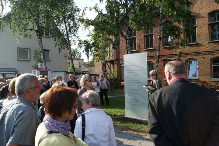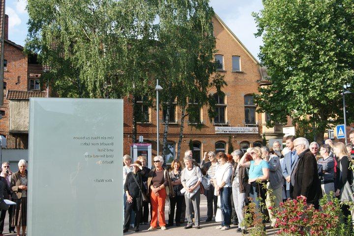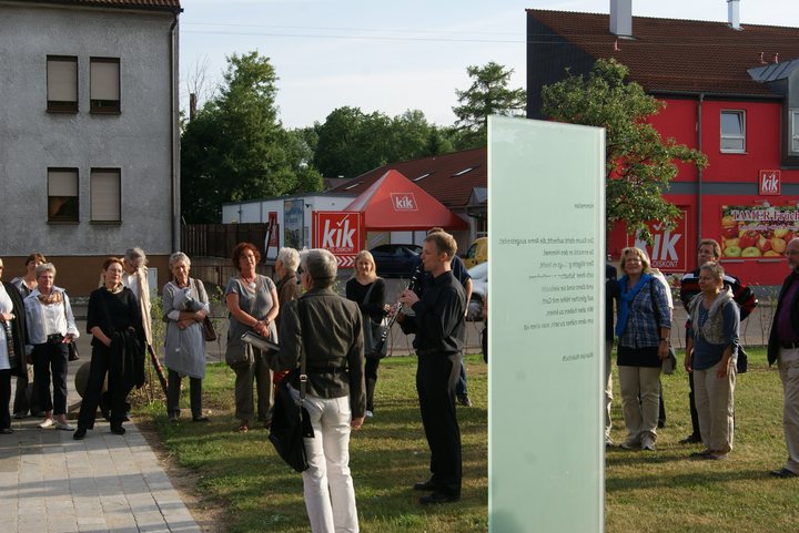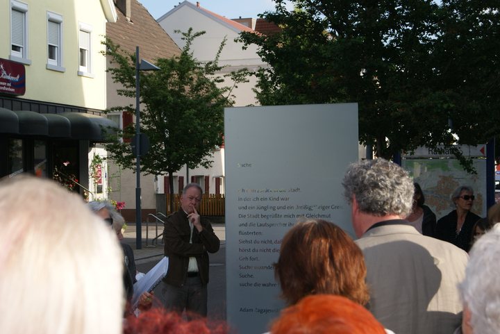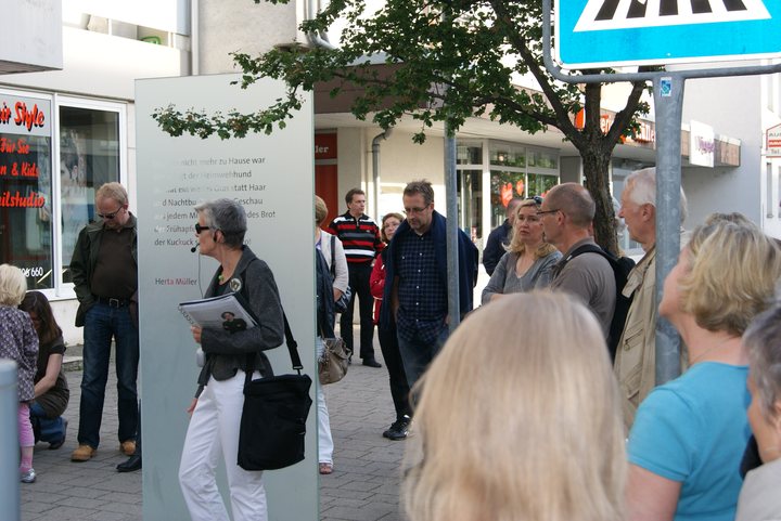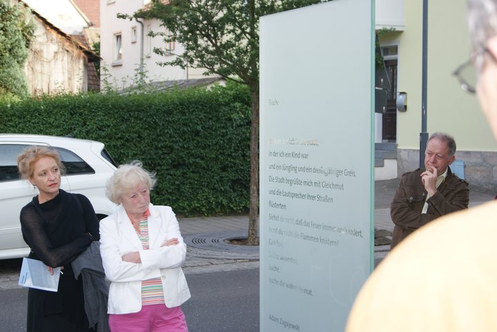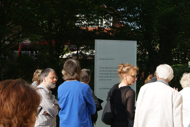 Im Rahmen ihrer Führung wies Tina Stroheker darauf hin, daß die Aufstellung der Stelen, für deren technische Ausführung der Vorsitzende des Kunstvereins Paul Kottmann mit tatkräftiger Unterstützung des städtischen Bauhofs verantwortlich zeichnete, daß dieser Poetenweg bis im Herbst auf jedenfall stehen bleiben wird.