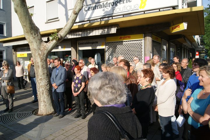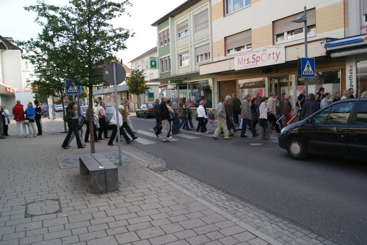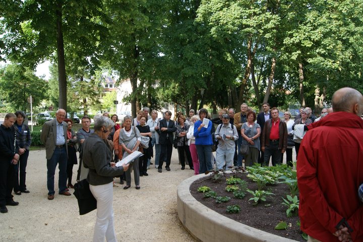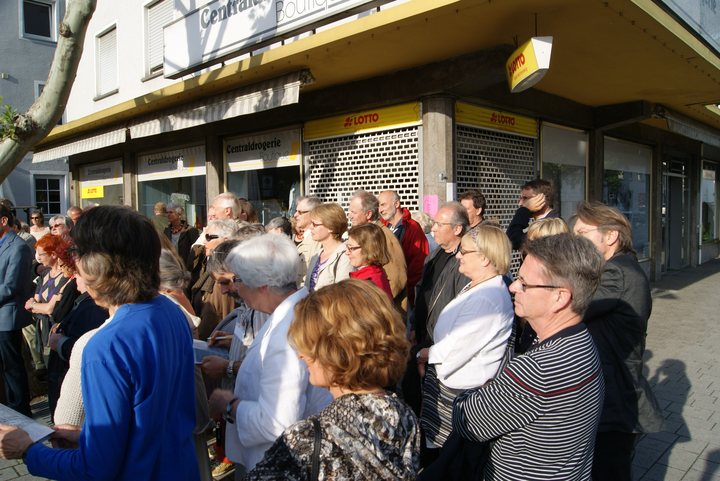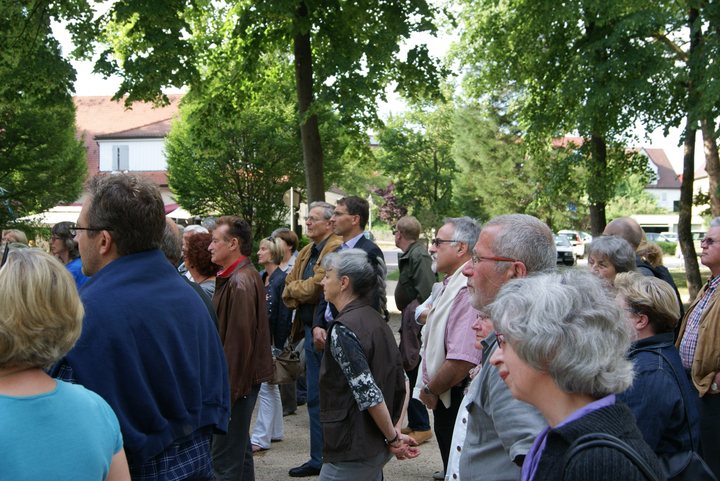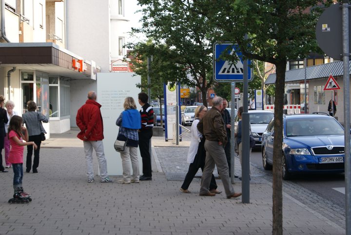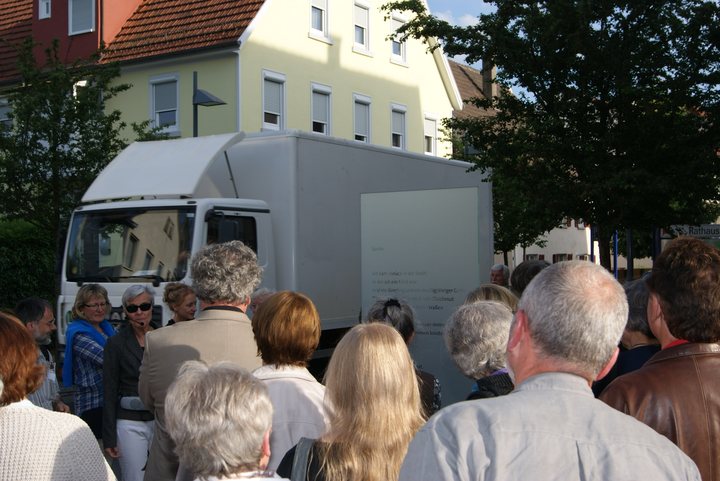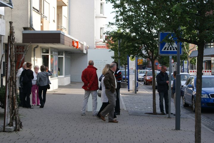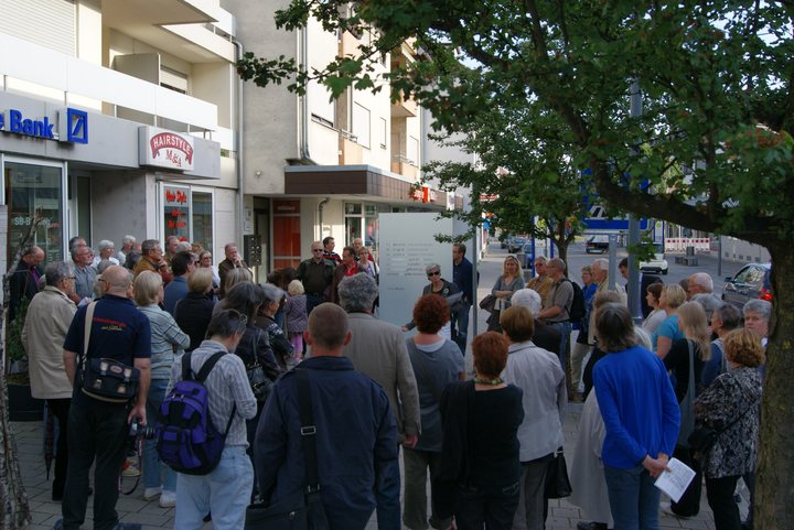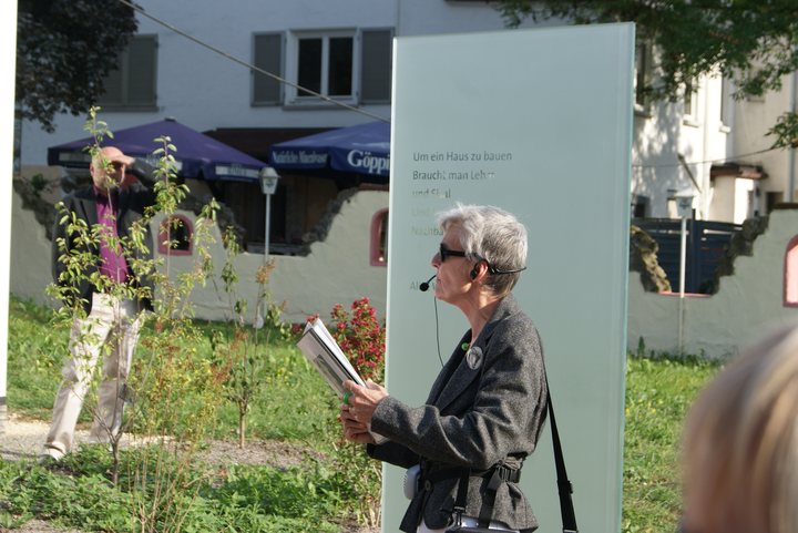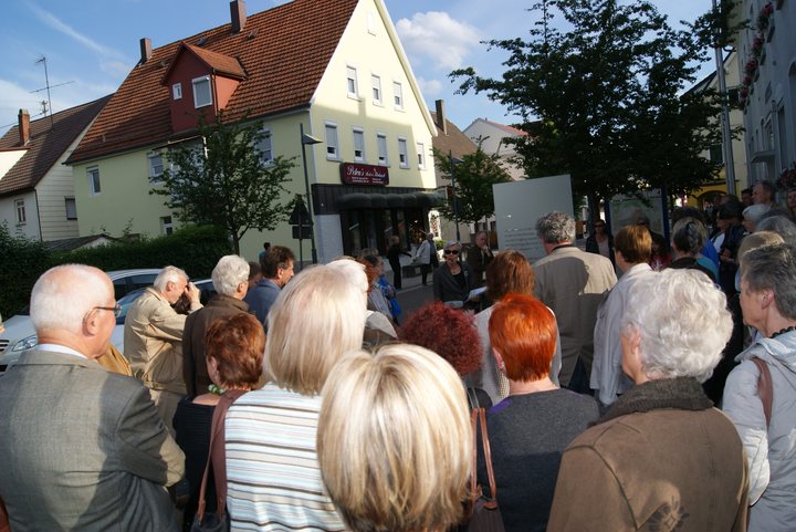 Eine überraschend große Zahl von Eislingerinnen und Eislingern haben sich eingefunden, um aus berufenen Mund sich den Eislinger Poetenweg erklären zu lassen. Bei schönsten Wetter führte in 'Patin' des Eislinger Poetenwegs, Tina Stroheker die interessierte Schar an eine Auswahl der insgesamt 21 Stelen, aufgestellt im gesamten Stadtgebiet.
