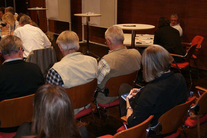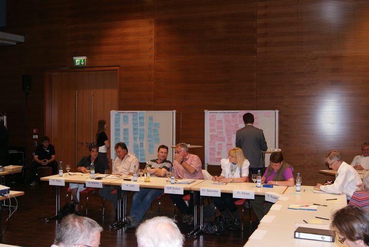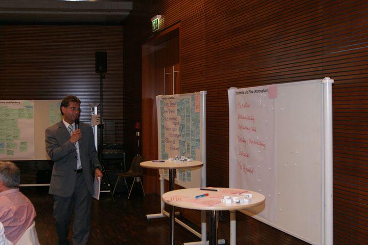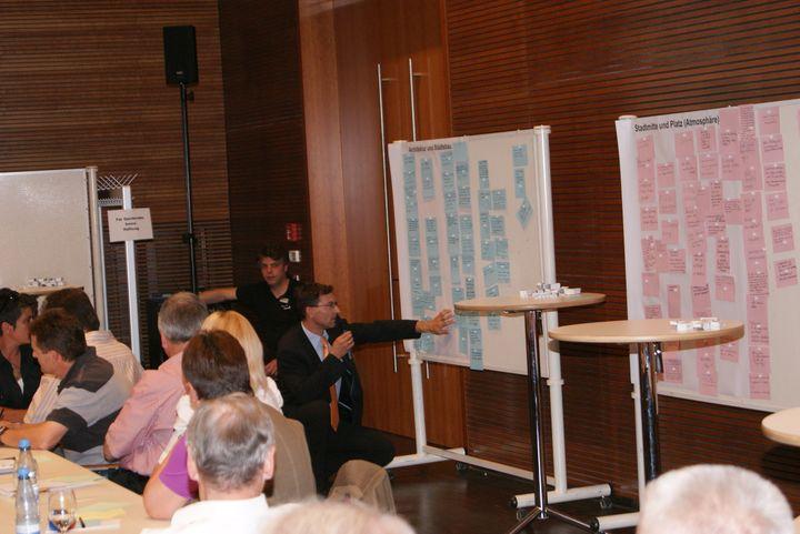 Das Bürgerforum Stadtentwicklung im Jurasaal der Stadthalle Eislingen stand diesmal unter dem Motto 'Wünsch dir was'. Mit Pinnwandmoderation waren die Teilnehmerinnen und Teilnehmer am Forumstisch und im Zuschauerraum aufgerufen zu den vier Themenbereichen: