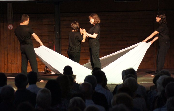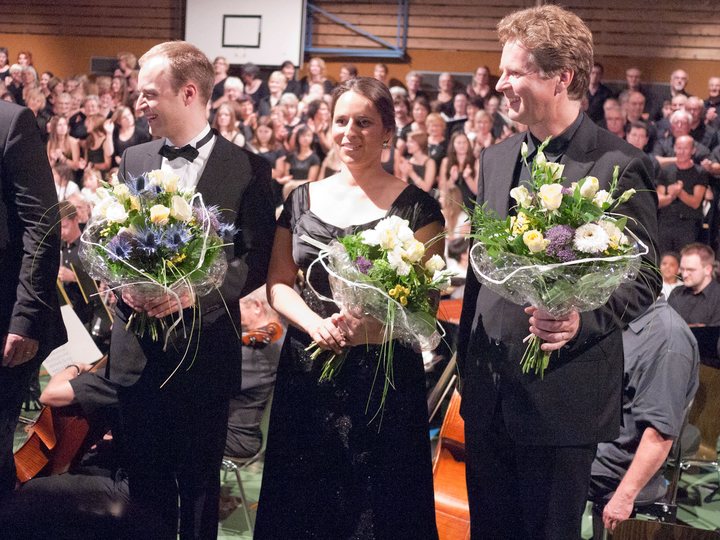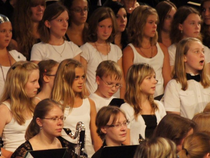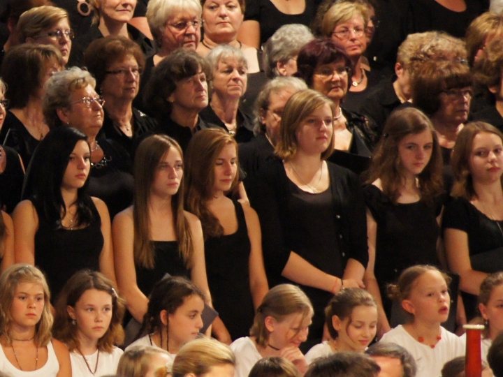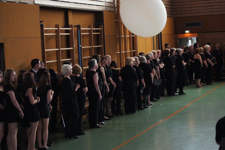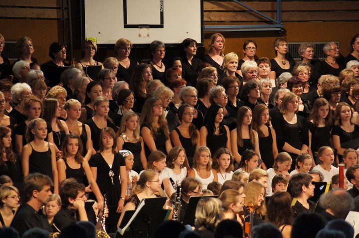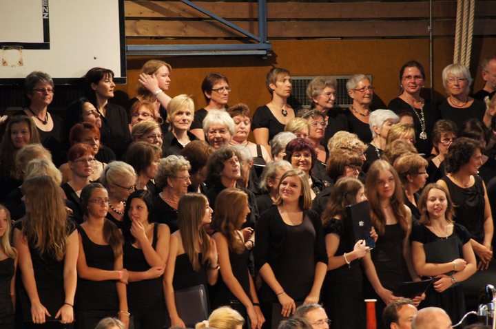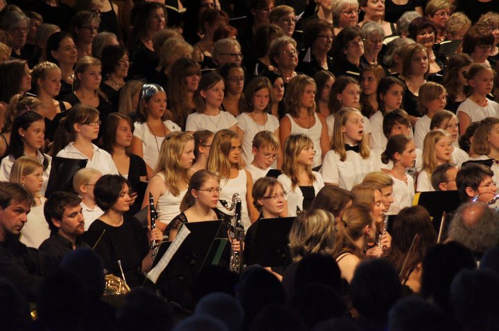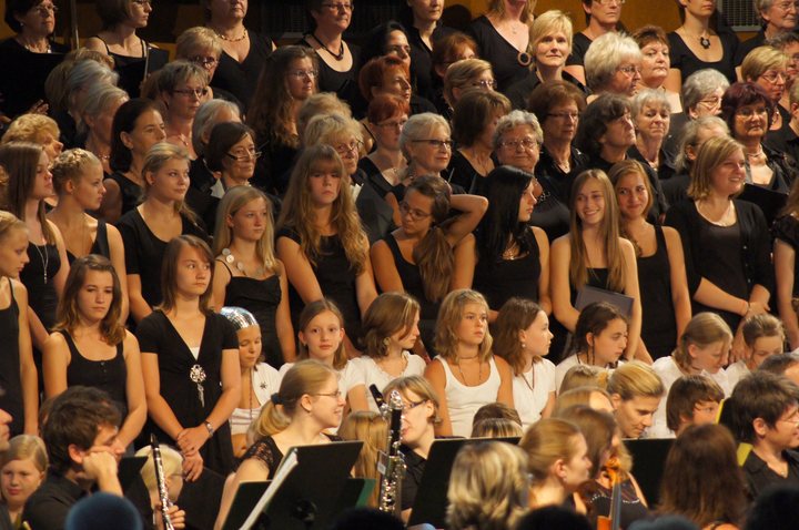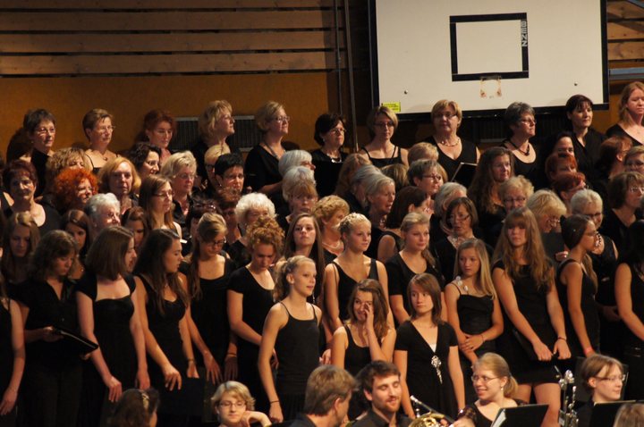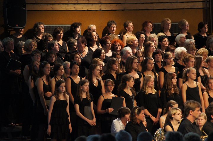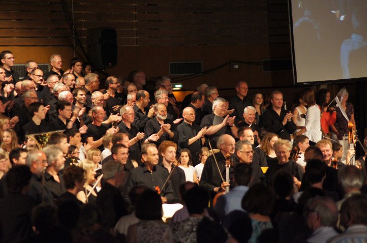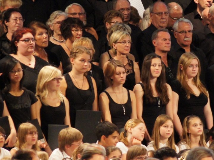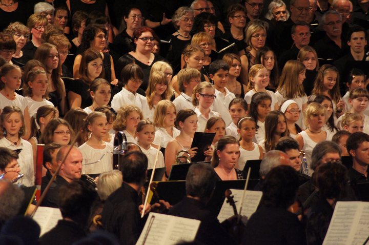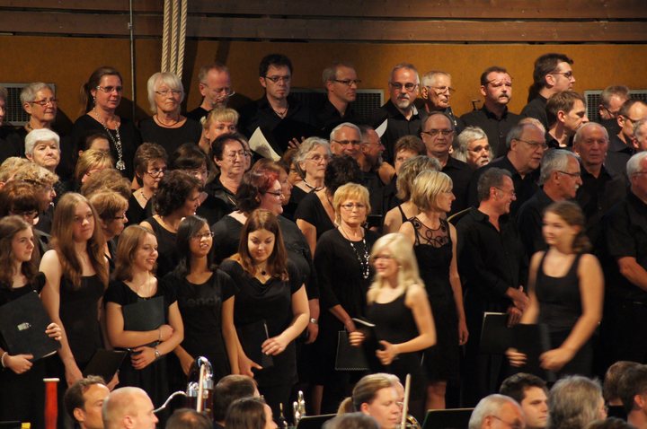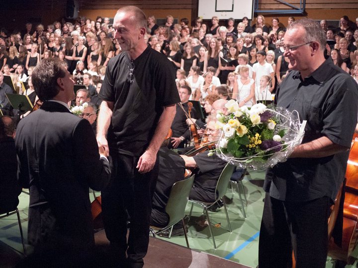 Der eine oder die andere kamen sogar vor lauter Begeisterung zum zweiten Mal in die Öschhalle um dieses für Eislingen Jahrhundertwerk anzuhören und zu schauen. Und die 300 Akteure legten sich trotz hochsommerlichen Temperaturen auch am Samstag-Abend wieder mächtig ins Zeug. Die begeisterten Besucherinnen und Besucher spendeten am Ende des Konzert frenetischen Beifall. |