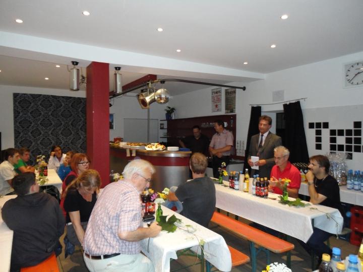 Im Anschluss wurde an hübsch gedeckten Tischen bei Schnitzelwecken und Getränken angeregt über die mehr als zwei Wochen dauernde tolle Zusammenarbeit gefachsimpelt. Die Entscheidung, ob die bis jetzt in ursprünglichem grau gehaltene Decke weiß gestrichen werden soll, steht noch aus. Da gab es unterschiedliche Ansätze bei allen Beteiligten, über die lebhaft diskutiert wurde.