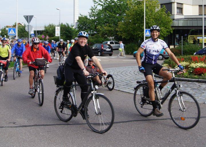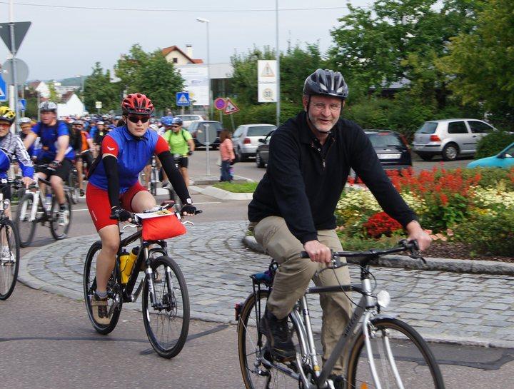Neben den beiden städtischen Beigeordneten, Fitterling und Schuster, konnten wir noch Altstadtrat Gerlach, sowie den Grünen-Landtags-Abgeordneten Fritz im Tross der Radlerinnen und Radler entdecken, die sich dieses Jahr quer durch Baden-Württemberg in Göppingen aufmachten. |