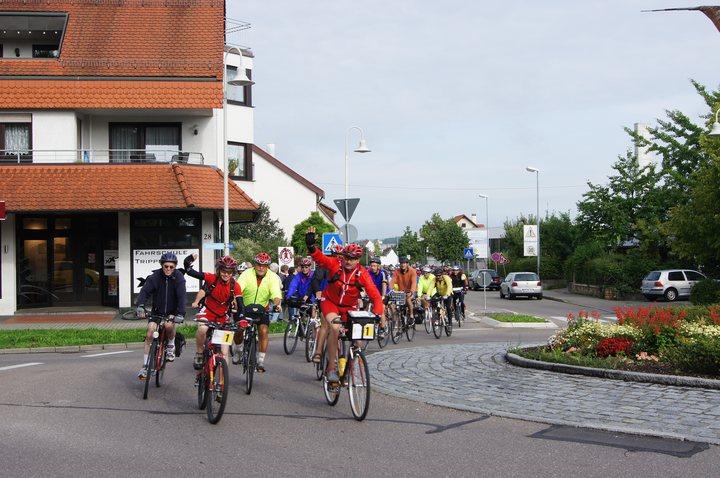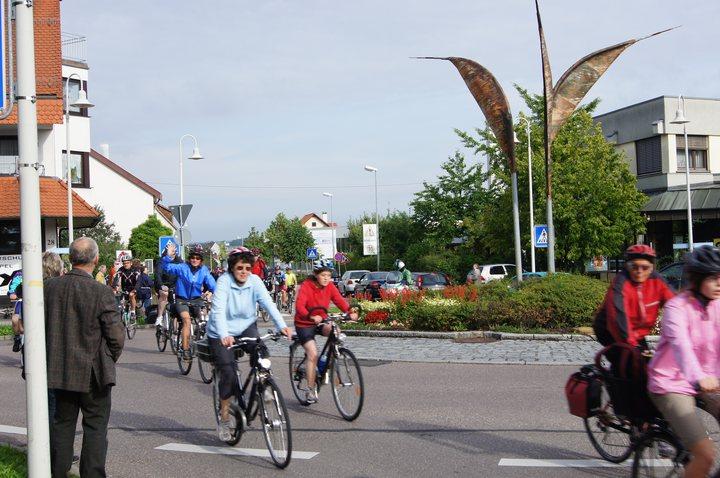 Tour de Ländle mit lokaler Prominenz quert Eislingen 2000 Radlerinnen und Radler umrundeten den Hallenbadkreisel 30.7.2011 - Hans-Ulrich Weidmann