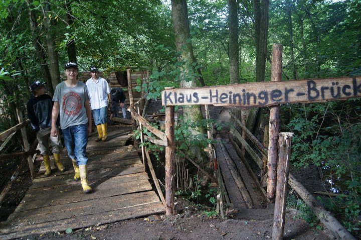 Klaus-Heininger-Brücke imTäle bei der Waldwunderwoche Wenn schon kein Rathaus, dann eine Brücke - Außerdem Clopapierlied als Video 12.8.2011 - Hans-Ulrich Weidmann