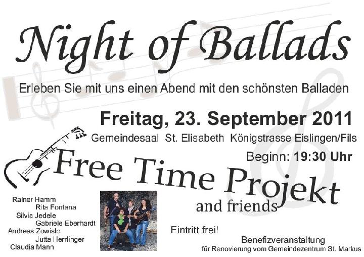 Benefizkonzert 'Night of Ballads' mit der Gruppe 'Free Time Projekt' 31.8.2011 - Kath. Kirchengem. Eislingen Christine Scheurer
