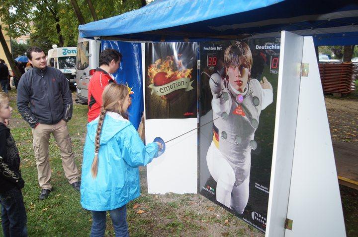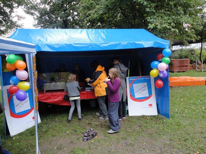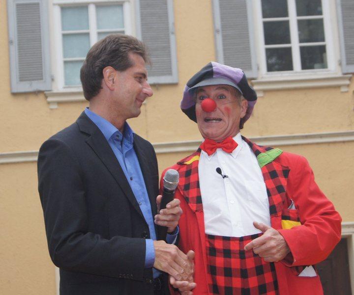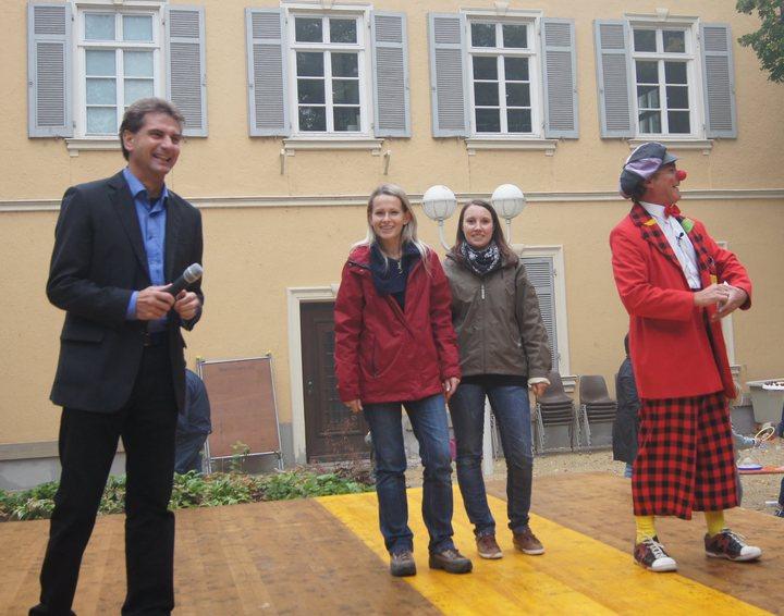 Es ist in Eislingen eine schöne Tradition, zum Weltkindertag im Schloßpark hinter der Stadtbücherei einen bunten Spielparcour anzubieten. Die Eislinger Vereine, Schulen und Gruppierungen unter der Regie des Kinder- und Jugendbüros haben sich auch dieses Jahr wieder mächtig ins Zeug gelegt, um ein vielseitiges Programm auf die Beine zu stellen. Bürgermeister Heininger, Dagnija Brühl, Carina Eberhardt und Clown Clip |