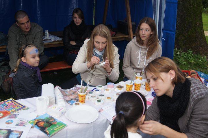 Spiel und Spaß trotz nasser Spielfläche - Bilder und Videos vom Weltkindertag Clown Clip und HipHop auf der Bühne im Eislinger Schloßpark 19.9.2011 - Hans-Ulrich Weidmann