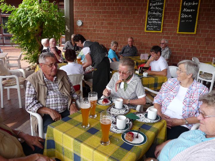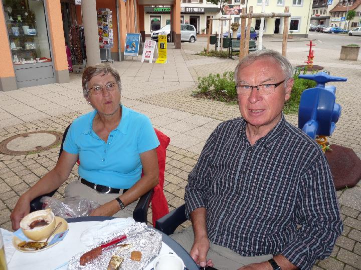 Meine Frau und ich kamen einige Tage vorher zur Vorbereitung der Gruppenwanderung auch in Schliengen an. Der Tag war sehr warm und wir freuten uns auf Himbeerkuchen und Kaffee. Gerade zur rechten Zeit als ein Gewitterregen einsetzte, entdeckten wir in der Eisenbahnstraße ein Cafe das uns Unterschlupf und die genannten Leckereien versprach.