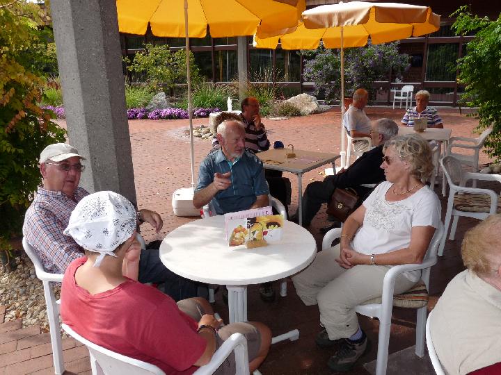 In Bad Bellingen machten wir im Kurhaus Rast. Die Aufforderung zum Tanztee ignorierten wir. Dafür besichtigten wir den schönen Kurpark und das moderne Thermalbad. Das ist auch ein Ort zum Wohlfühlen. Mit der Bahn fuhren wir nach Müllheim zurück. Bei dieser Gelegenheit konnten wir auch gleich lernen, wie man eine Fahrkarte löst.