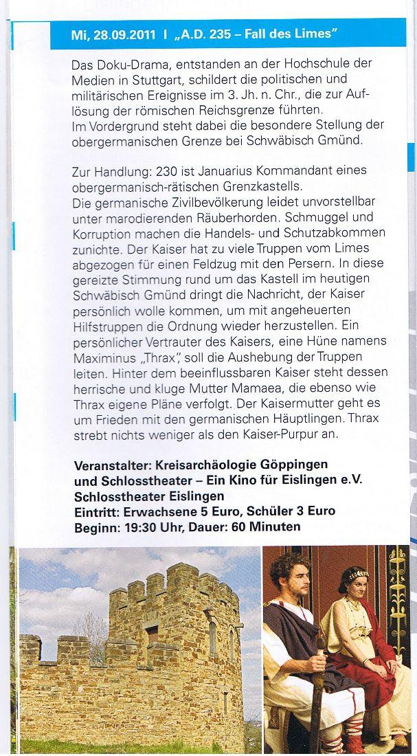 Mittwoch 19:30 Uhr zeigt die Kreisarchäologie den Film der Hochschule der Medien im Schlosstheater - Ein Kino für Eislingen e.V.