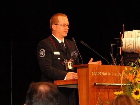 „Mit Martin Stingl hat Eislingen seinen dritten hauptamtlichen Feuerwehrkommandanten“ stellte Winfried Fuchs fest. Als wichtige anstehende Aufgabe nannte er unter anderem den digitalen Sprechfunk, die Modernisierung der Feuerwehr und den Erhalt des technischen Standards.