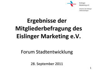 Ergebnisse der Mitgliederbefragung des Eislinger Marketing e.V. Präsentiert beim Forum Stadtentwicklung am 28. September 2011 29.9.2011 - Eislinger Marketing e.V.