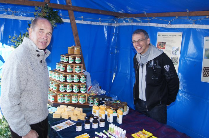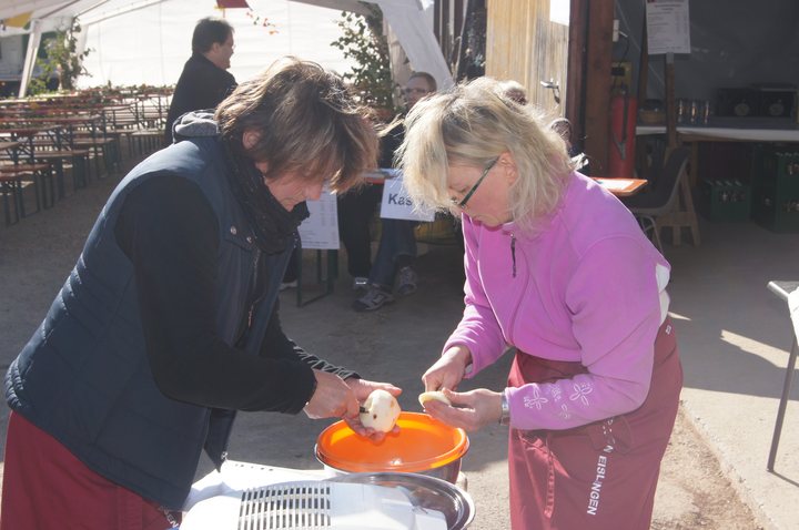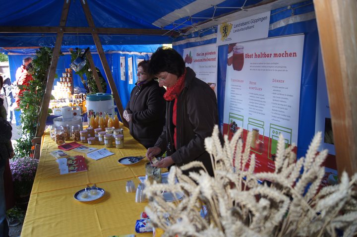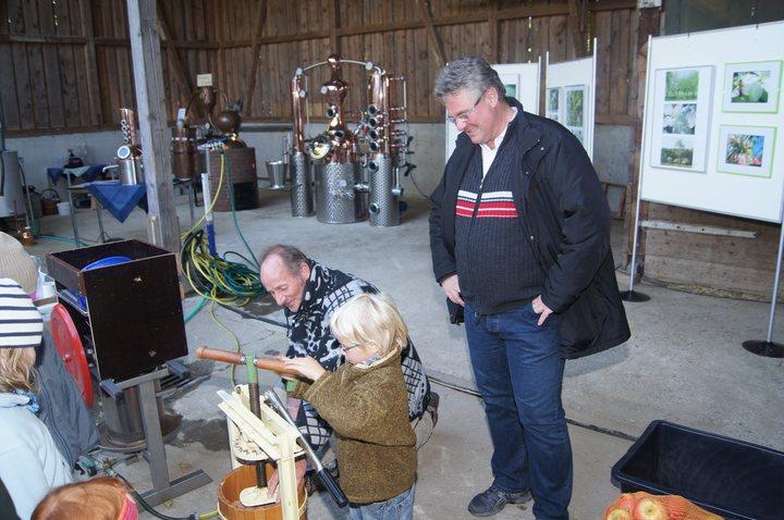Besser konnte das Wetter für einen solchen Anlaß nicht sein. Bei strahlenden Herbstwetter präsentierten sich die Obst- und Gartenbauvereine Eislingens und Krummwälden zusammen mit Imkerei, Brennerei auf dem Aussiedlerhof Zeller zwischen Eislingen und Krummwälden. Ergänzt wurde das Angebot durch Bewirtung der Landfrauen und der Kolpingsfamilie. Selbst mosten..früh übt sich... |
