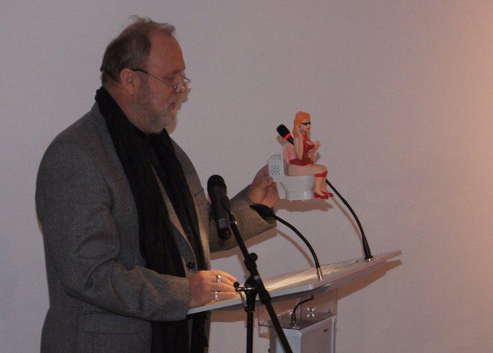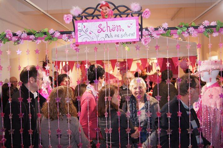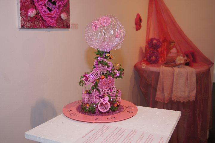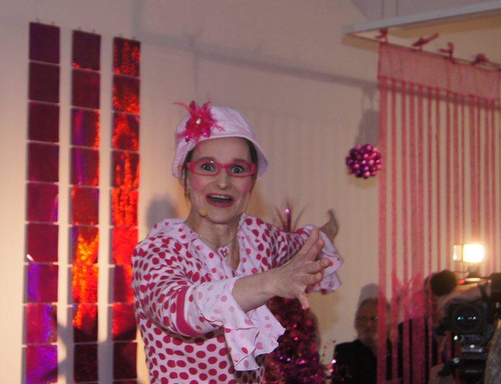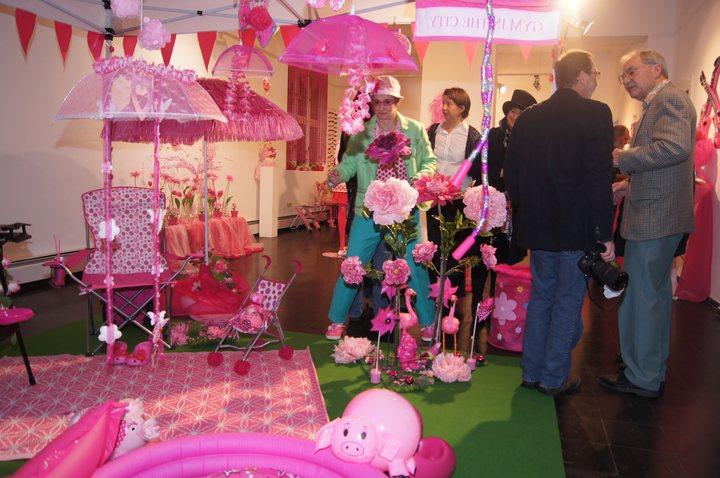 Wer die Galerie in der Alten Post betritt, wird fast erschlagen von Rosa, die Lieblingsfarbe von Heike Sauer, alias Marlies Blume. Diese Farbe findet sich in allen Sammlerstücken wieder, egal ob Unterhosen, Blumen oder Kreiselkunstentwurf. In einem Kabinett ist dann noch Dornröschen, auch im rosa Look zu entdecken.