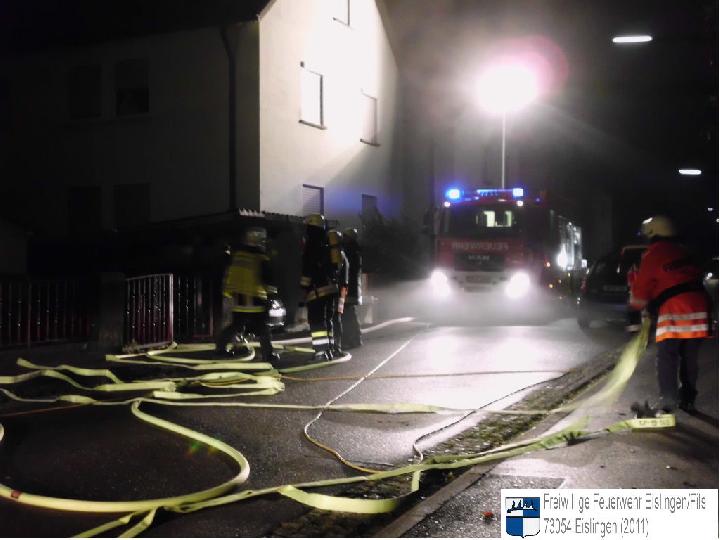 Um 20:30 Uhr am Mittwochabend mussten die Einsatzkräfte der Feuerwehr Eislingen in der Eberhardstraße in Eislingen einen Wohnungsbrand löschen. Beim Eintreffen des Einsatzleiters, Stadtbrandmeister Martin Stingl, brannte im 1. Obergeschoss bereits ein Zimmer in voller Ausdehnung. Nachdem die ersten Fahrzeuge der Feuerwehr an der Einsatzstelle eingetroffen waren, rückte die Feuerwehr im Innenangriff dem Feuer zu leibe. Mit Atemschutz und 3-C Rohren konnte der Einsatzleiter der Integrierten Leitstelle in Göppingen gg. 21:00 Uhr melden, dass das Feuer „unter Kontrolle“ ist. Bereits um 21:09 Uhr war das Feuer vollständig gelöscht und die Feuerwehr konnte mit den Nachlöscharbeiten beginnen. Hierzu wurde die Wärmebildkamera eingesetzt um Glutnester in den Decken oder Wände festzustellen. Während den Löscharbeiten wurde ein Feuerwehrmann verletzt und mit dem Rettungswagen, der für die Bewohner der Wohnung und auch für die Einsatzkräfte der Feuerwehr automatisch mit alarmiert wurde, in ein Krankenhaus verbracht. Die Nachlöscharbeiten dauerten noch bis Mitternacht an. Zur Eigentumssicherung wurde das THW Geislingen alarmiert, da die Brandermittlungen erst am darauffolgenden Tag erfolgten. Die Eislinger Feuerwehr, die mit dem Kommandowagen, 2 Löschgruppenfahrzeugen, der Drehleiter, dem Gerätewagen Transport und dem Mannschaftstransportwagen an der Einsatzstelle vor Ort war, über gab dem THW die Einsatzstelle damit Fenster und Türen gesichert werden konnten. Die Polizei hat die Ermittlungen zu der Brandursache aufgenommen. Insgesamt entstand ein Sachschaden in Höhe von 100.000 €.