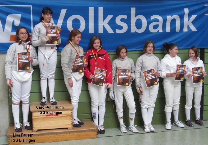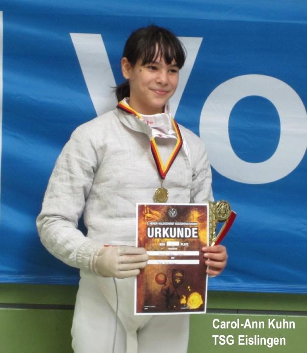 Im ältesten Schülerjahrgang (2000) gingen die ersten vier Plätze an die Fechterinnen aus Künzelsau. Für die sechs Teilnehmerinnen der TSG, Lea Hartmann, Annette Kramer und Nina Kottmann blieben in dem starken Feld die Plätze fünf, sechs und neun. Inga von Buch wurde zehnte, Katja Binder 12. und Savina Küpper 14.