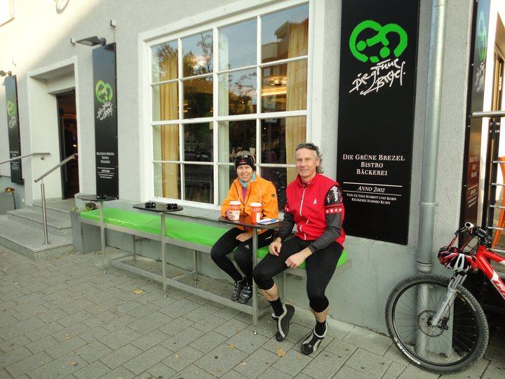 Mit einem neuen Angebot an Freiluftfans macht die Grüne Brezel am Freimann-Kreisel auf sich aufmerksam. Mit Blick auf das Eislinger Verkehrsgeschehen kann man/frau in der Nachmittagssonne auch im November der Kaffee im Freien genossen werden. |