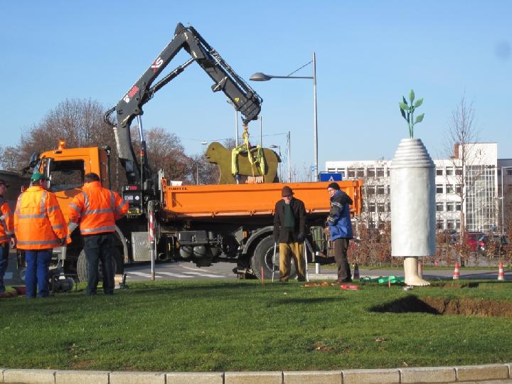Kreiselkunst ist installiert - Prof. Fritz Schweglers Skulpturen sind vor Ort Morgen um 15 Uhr ist es soweit - die Hüllen fallen 08.12.2011 - Peter Ritz- Angela Schirling