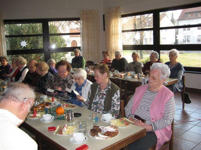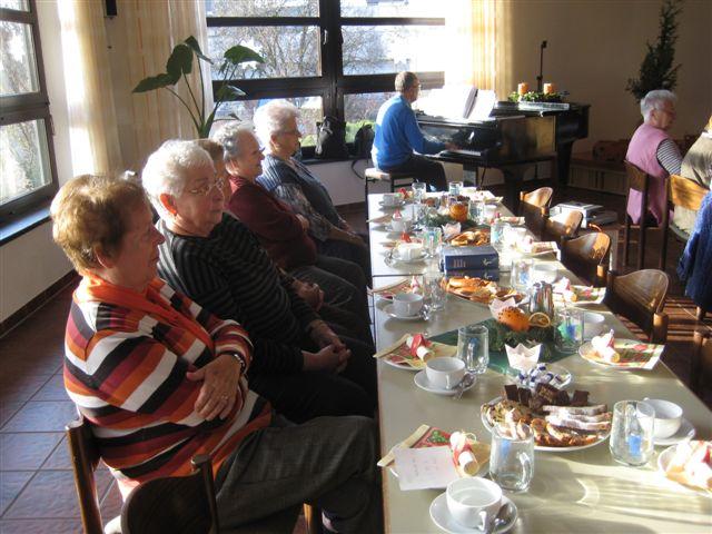 Zwischen den einzelnen Vorträgen wurden die Geburtstagswunschlieder gesungen, das eine oder andere Viertele mit Genuss getrunken und auch der Plausch mit den Nachbarn kam nicht zu kurz. Tino Hilsenbeck verteilte an alle Anwesenden noch das Jahresprogramm 2012, verbunden mit dem Wunsch, dass auch im neuen Jahr alle wieder dabei sein können, wenn es dann heißt: Herzliche Einladung zum Seniorennachmittag am 12. Januar 2012. Auf dem Programm steht „Ein märchenhafter Jahresbeginn mit Märchenerzählerin Sandra Sonnentag aus Ottenbach.“