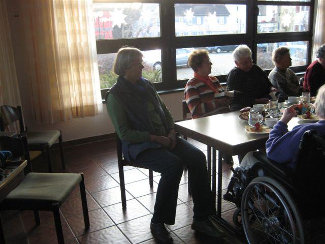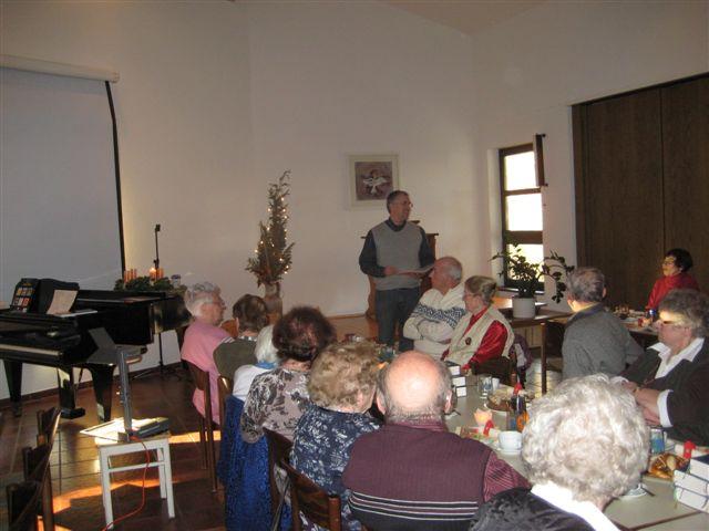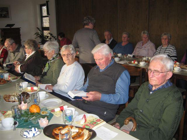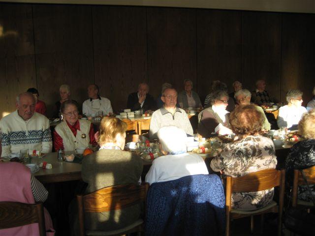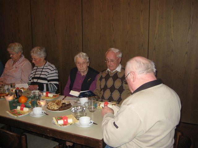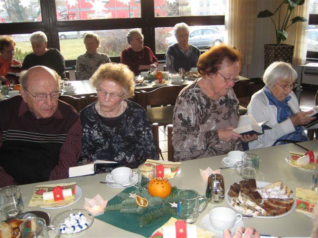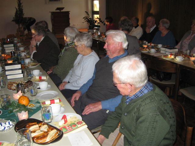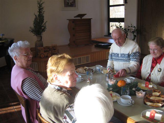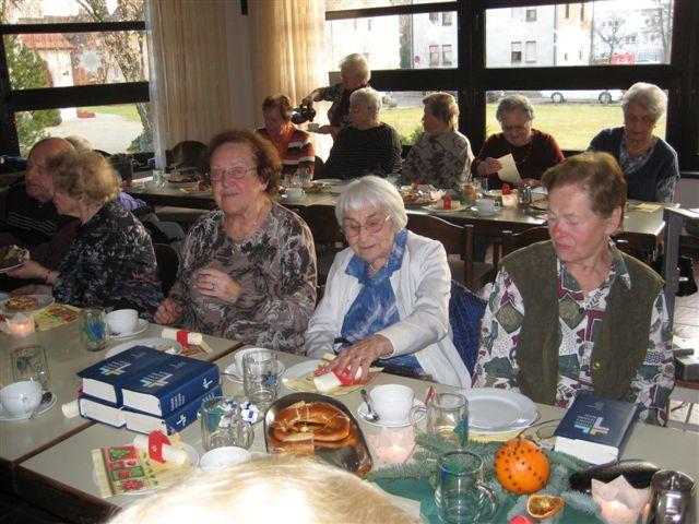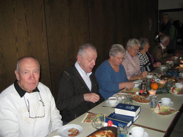 Zeit zu Gesprächen war nun, beim gemeinsamen Adventskaffee, gegeben. Stollen, Apfelbrot, Schokoladenbrot, ein Zucchinikuchen und sonstige Leckereien mundeten allen ausgezeichnet und ein herzlicher Dank galt den fleißigen Händen, die diese Köstlichkeiten vorbereitet hatten.