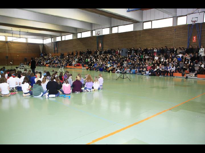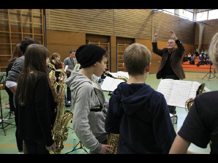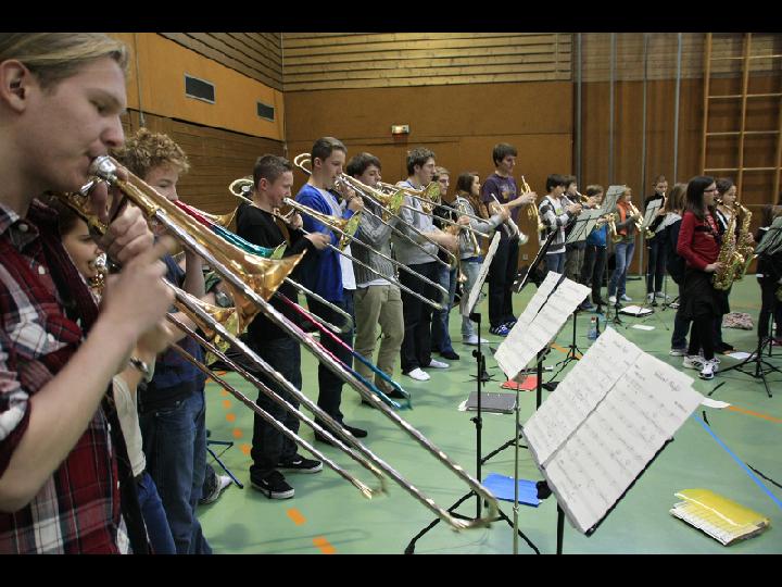 Zum Jahresabschluss versammelte sich die Schülerschaft des EKG in der Sporthalle 2, um den vereinten Chören, Orchester, Big Band und Flötenensemble zu lauschen und selbst mitzusingen. Die Big Band |