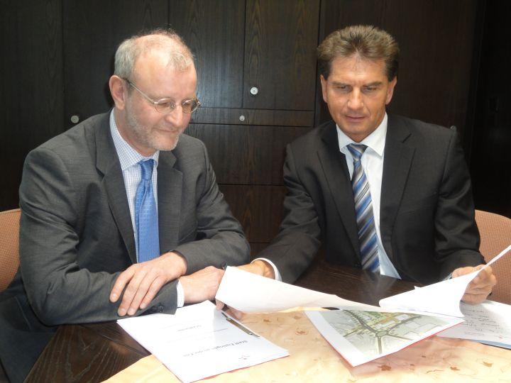 Bei einem gemeinsamen Arbeitsgespräch zwischen dem Landtagsabgeordneten Jörg Fritz und Oberbürgermeister Klaus Heininger wurden die derzeit brennenden Förderthemen der Stadt Eislingen besprochen. Ein Schwerpunkt ist und bleibt die Stadtentwicklung und hier vorrangig die Schaffung einer erkennbaren und erlebbaren Stadtmitte mit Aufenthaltsqualität für die Bürgerinnen und Bürger. Um dieses Ziel mit einem Gesamtkonzept aber in der Realisierung und Finanzierung schrittweise umsetzen zu können, ist es notwendig, das jetzt auslaufende Sanierungsverfahren in ein neues Gebiet mit neuem Förderrahmen und neuem Bewilligungszeitraum überzuleiten. OB Klaus Heininger erläuterte anhand von Plänen die einmalige Entwicklungschance für eine Stadtmitte auf der Grundlage der vom Gemeinderat kürzlich beschlossenen Weichenstellung. Die entsprechenden Anträge sind bereits beim Finanz- und Wirtschaftsministerium gestellt. Landtagsabgeordneter Jörg Fritz versprach sich für die Förderung beim Ministerium einzusetzen.