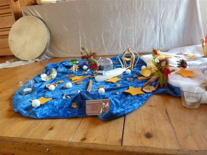 Auf der Bühne waren schon verschiedene, interessante Gegenstände und Instrumente vorbereitet, die Märchenerzählerin Sandra Sonnentag zwischen den einzelnen Märchensequenzen erklingen ließ. Und so nahm sie die Zuhörer/innen mit auf die Reise mit dem klassischen Märchenbeginn „Es war einmal …“, war dazumal, als auf den Weidenbäume noch Veilchen trieben und die Stubenfliegen noch Märchen schrieben. Doch nicht nur Märchen, sondern auch die Wahrheit versteckt sich in den Geschichten der alten und neuen Zeit: Wie der Schnee zu seiner Farbe kam und Sterntaler, die Reise um die Welt und was der Winter mit dem Altern gemeinsam hat. Herr Winter, der unverdient Geld in Fülle bekommt und dadurch eine Familie in Verzweiflung und Nöte stürzt, und die dann doch durch glückliche Fügungen zu Wohlstand kommt. Das Leben aus verschiedenen Perspektiven der Tiere betrachtet, sowie die Suche nach dem Glück, das man sehen, erkennen und auch annehmen muss.