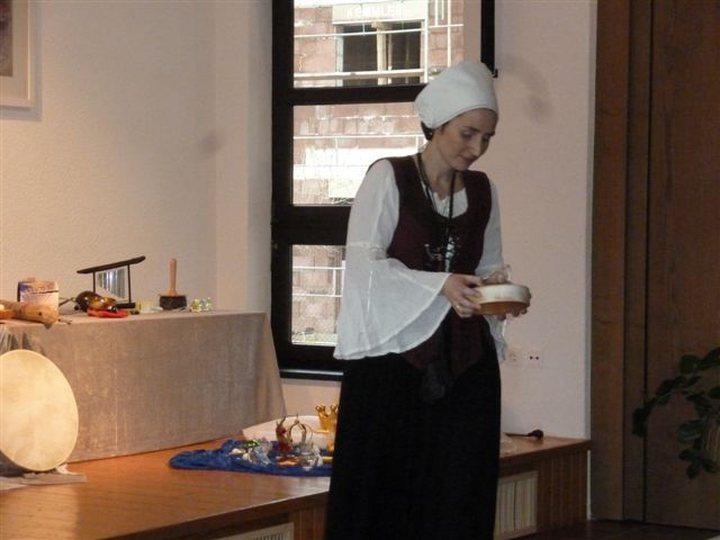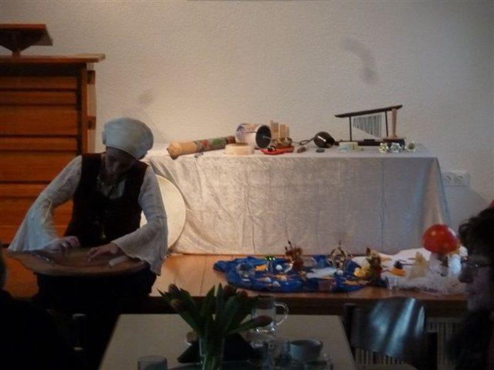 Während Frau Sonnentag in ihrem mittelalterlichen Gewand erzählte, hätte man die viel besagte Stecknadel fallen hören können, so aufmerksam lauschten die Anwesenden den Märchen und Geschichten. Zwischen den beiden Erzähleinheiten gab es für die Jubilare unter den Anwesenden noch ein Wunschliedersingen, bevor wieder neue Geschichten die Zuhörer/innen in ihren Bann zogen.