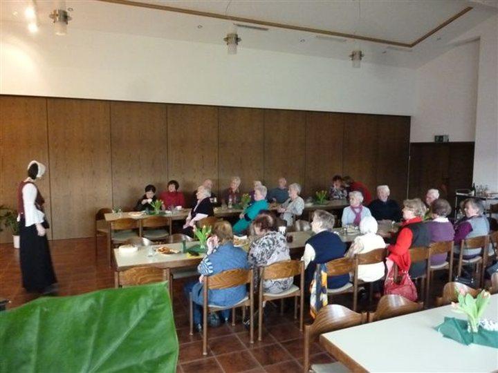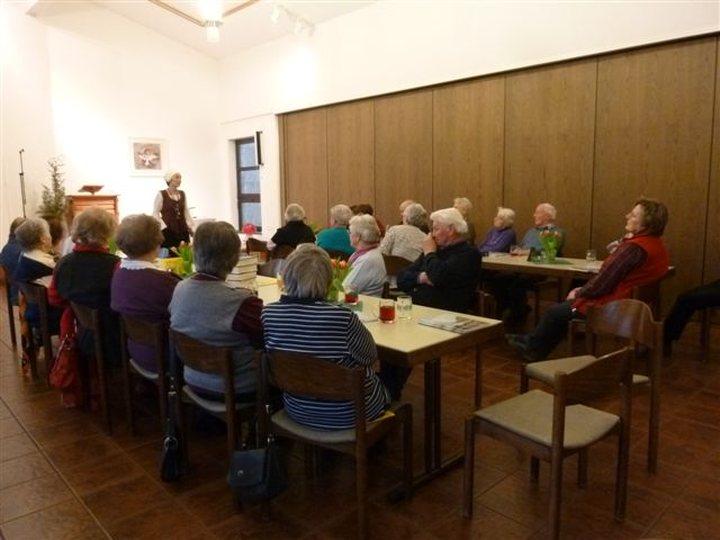 Angesichts der frühlingshaften Temperaturen überraschten die Besucher/innen an diesem Seniorennachmittag im Januar die frischen Tulpensträuße auf den Tischen.