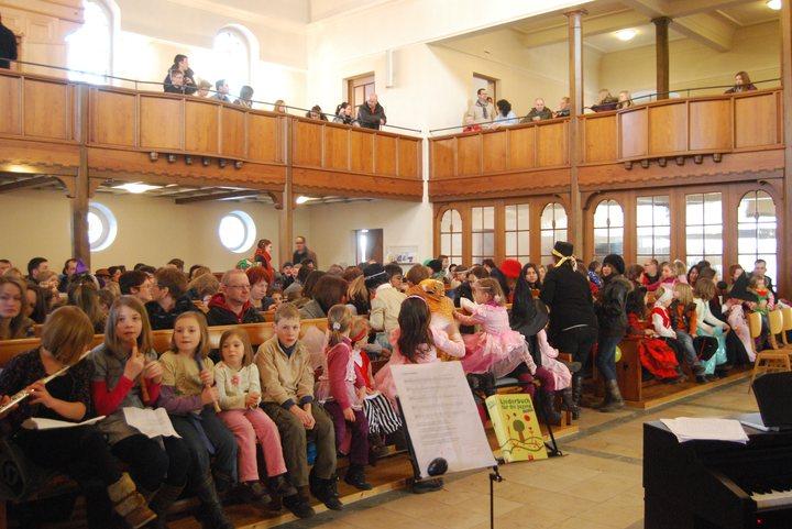 „Das hätten wir nie gedacht“ sagten die Kinderkirchhelfer am 5. Februar überwältigt , als sich die Lutherkirche in Nullkommanix mit Piraten, Löwen, Cowboys, Indianern, Clowns, Löwen, Pippi Langstrumpfs und vielen Eltern füllte. Vor einem Jahr wurde bei der Bezirksfortbildung die Idee geboren, einen gemeinsamen Kindergottesdienst für den ganzen Kirchenbezirk Göppingen anzubieten. Aber dass dann gut 250 Kinder und Erwachsene kommen und sogar die Emporen belegt wurden, damit hätte man doch nicht gerechnet. Im Anspiel kam dann auch heraus, warum alle verkleidet kamen: … sucht ein passendendes Kostüm für den Faschingsball, das zu ihr passt, aber sie ist nicht so mutig wie ein Löwe, nicht so frech und selbstbewusst wie Pippi Langstrumpf, auch nicht so elfengleich wie eine Prinzessin. „Eigentlich bin ich ganz anders“, klagt sie. Dann aber entdeckt sie es: eine Krone. „Ich bin ein Königskind“, wir sind alle Königskinder, Kinder Gottes, der uns so gemacht hat wie wir sind, wir sind geliebt, so wie wir sind, mit allen Macken und Kanten. Unsere Wege sind von Gott begleitet, deshalb brauchen wir uns nicht zu sorgen, Gott hält uns in der Hand. So sangen es auch die Kinder von Boll, Dürnau und „Gott ist stark, stärker als Superman“. |