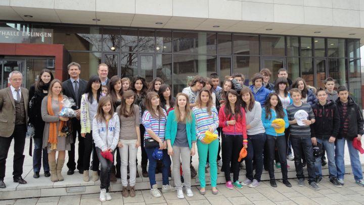 Rund 30 französische Schülerinnen und Schüler des Collége St. Joseph halten sich derzeit auf Einladung des Erich Kästner Gymnasiums in Eislingen auf, um Land, Leute und die deutsche Kultur kennen zu lernen. Die Austauschprogramme der Eislinger Schulen sind ein wichtiger Bestandteil der lebendigen Städtepartnerschaft zwischen Eislingen und Oyonnax. Die Stadt unterstützt dies nach Kräften und Oberbürgermeister Klaus Heininger empfing die jungen französischen Gäste mit ihren Begeleitlehrern in der Stadthalle.