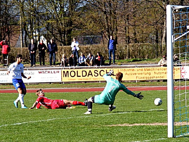 Dabei hilft das Remis den Gästen weiter. Die Mannschaft von Bad Bolls Trainer Mirko Doll wahrt damit Distanz zur Abstiegszone, der FC Eislingen steckt weiter im Keller der Liga fest. Entsprechend beurteilten die beiden Trainer das schwache Derby auch. „Wir haben auswärts einen Punkt geholt der uns weiterhilft. In der Defensive haben wir gut gestanden und mit etwas Glück im Abschluss wäre uns auch noch der Sieg gelungen. Es fehlte uns in vielen Situationen der letzte, finale Pass“, so Bad Bolls Trainer Mirko Doll, der mit dem Remis „gut leben kann“. Dabei spielte der Gästetrainer mit dem Hintergedanken Auswärtssieg auf die 77. Spielminute an, als Patrick Kölle nach Zuspiel von Lukasz Majowski frei vor FC-Keeper Michael Bantle zum Schuss kam. Der Eislinger Torhüter verkürzte geschickt den Winkel und konnte parieren. Fast hätte es wenig später für den insgesamt enttäuschenden FC Eislingen sogar noch zum Happy End gereicht. Für den einzig nennenswerten Angriff der Eislinger in Hälfte zwei zeichneten sich dabei ausgerechnet zwei Einwechselspieler verantwortlich. Umut Sat legte quer auf Alexander Müller und Bad Bolls Torhüter Jerome Possinke konnte mit Fußabwehr gerade noch klären (80.). Der Treffer und drei Punkte wären in momentaner Situation Gold wert gewesen für die Blau-Weißen. Doch nimmt man die neunzig Minuten, so hatte die stark abstiegsbedrohte Heimmannschaft den Sieg auch nicht verdient. „Uns fehlte heute die Passgenauigkeit. Der zweite Ball kam nicht an, da war Bad Boll eindeutig besser als wir.“, konstatierte hernach ein sichtlich enttäuschter Eislinger Trainer Michael Baumgarten. Für eine Mannschaft die den Kopf noch aus der Schlinge ziehen will, boten die Eislinger über weite Strecken der Partie viel zu wenig. Es blieb vieles Stückwerk beim FC. Den holprigen Platz wollten indes beide Trainer nicht als Ausrede für die stark limitierte Fußballkunst gelten lassen. In technischer Hinsicht boten beide Teams Magerkost. Der FC brauchte 16 Minuten um überhaupt einmal vors Gästetor zu kommen. Ein Schuss des insgesamt blassen Edis Yoldas verfehlte sein Ziel. Die größte Torgelegenheit vor dem Seitenwechsel bot sich indes Bad Bolls Moritz Straub der nach Vorarbeit von Lukasz Majowski frei vor FC-Keeper Michael Bantle verzog. So blieb es beim insgesamt gerechten Remis, welches den Gästen eine komfortable Lage für die restlichen Spiele verschafft und den FC in hinteren Regionen der Liga verharren lässt.