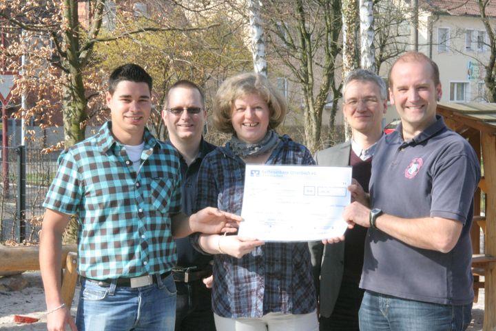 Zu einem freudigen Ereignis trafen sich Vertreter der Christuskirchengemeinde mit den Verantwortlichen des Barwagen-Teams e.V. und der Eislinger Feuerwehr. Das Barwagen-Team und der Löschzug 3 Krummwälden spendeten für den Kindergarten Christuskirche 200 €.